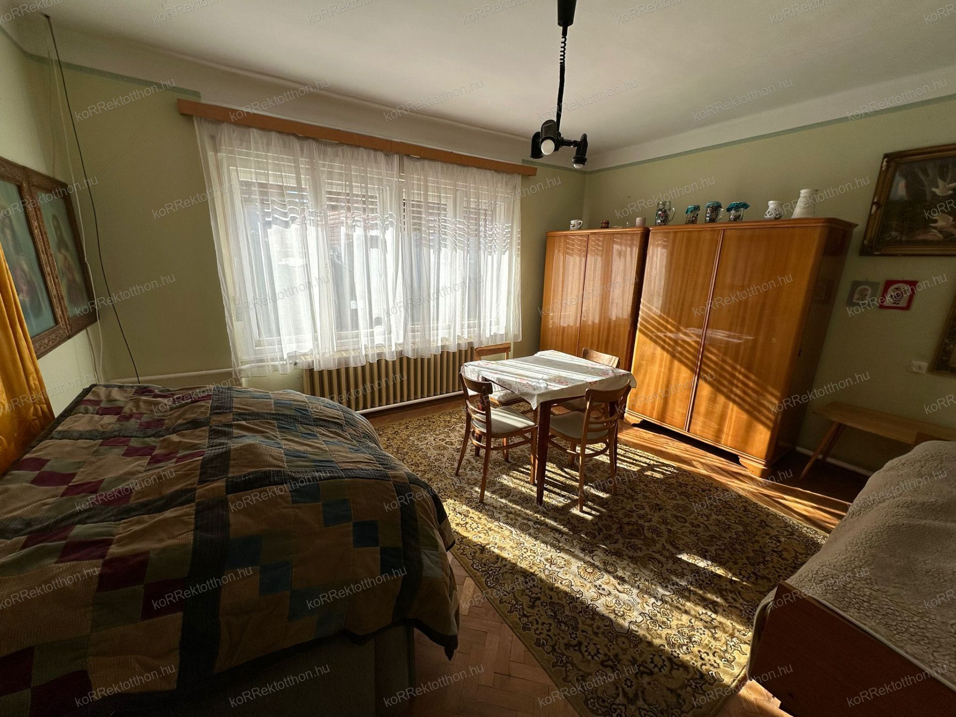Az ingatlanban kettő tágas, világos, utcafrontra néző szoba található, melyek kellemes, napfényes hangulatot biztosítanak, a harmadik szoba pedig a kertre néz. A ház összkomfortos, fűtése vegyestüzelésű kazánnal megoldott.