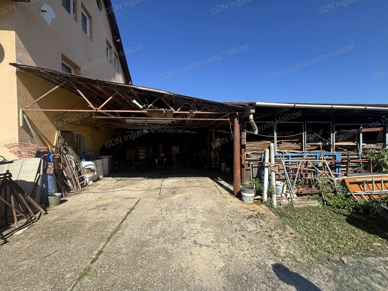 • Mélyrétegű betonozással készült udvar (175 m²) fedett dupla kocsibeállóval