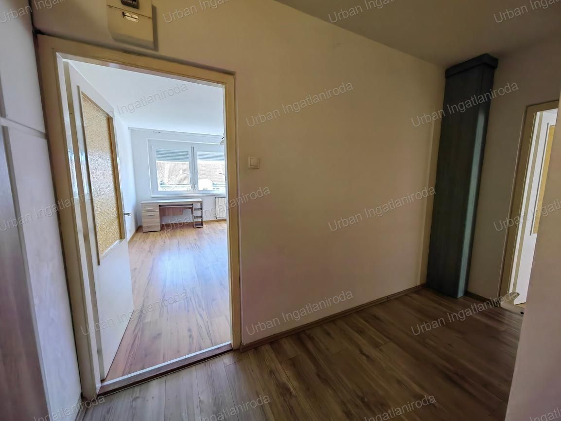 INGATLAN ELOSZTÁSA: Előszoba, nappali plusz két hálószobás, konyha, fürdő és a wc külön helyiségben.