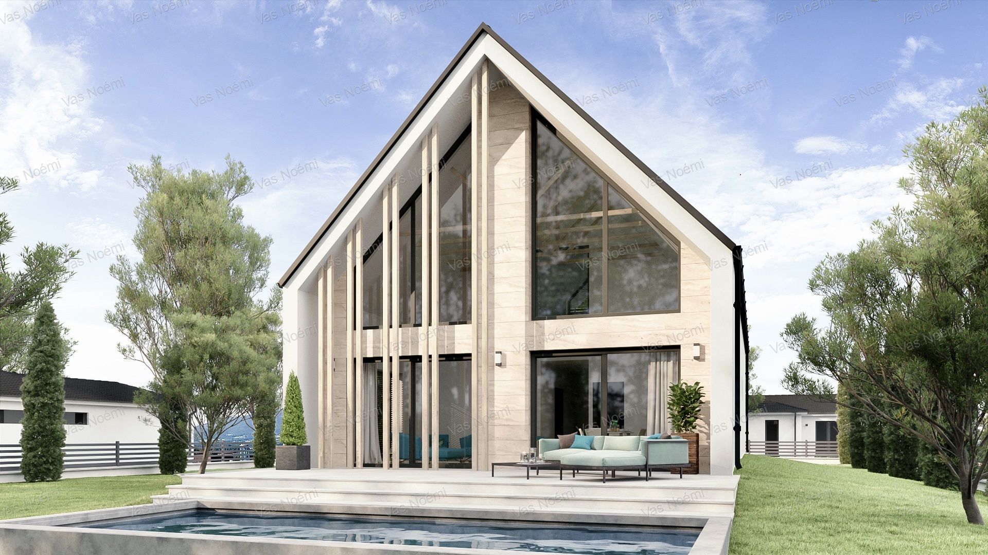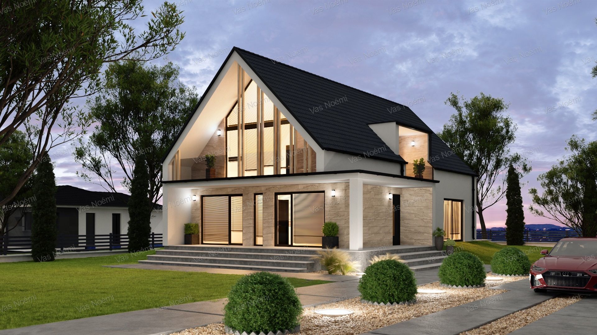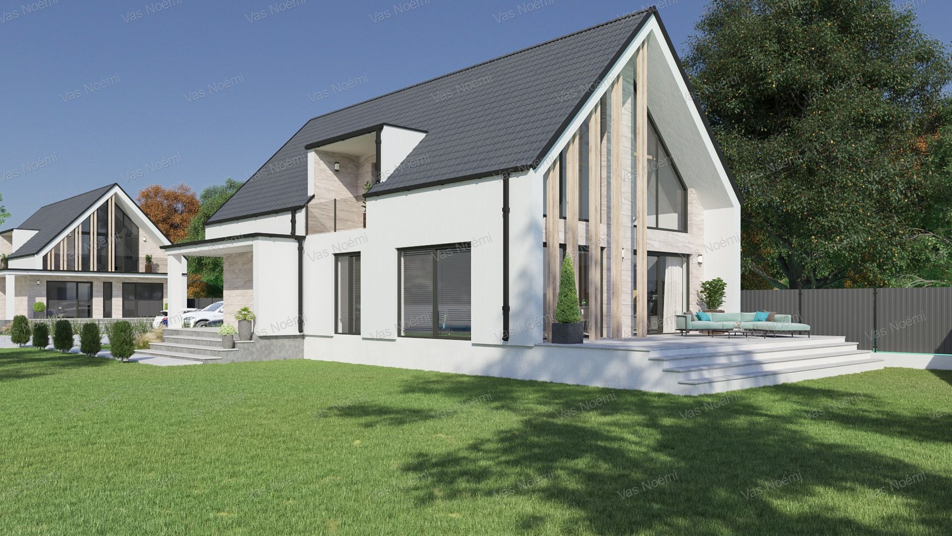 A feltüntetett ár tartalmazza a tervezést és teljes kivitelezést a lent csatolt műszaki tartalommal, és a telek vételárát is, 5% ÁFA-val.