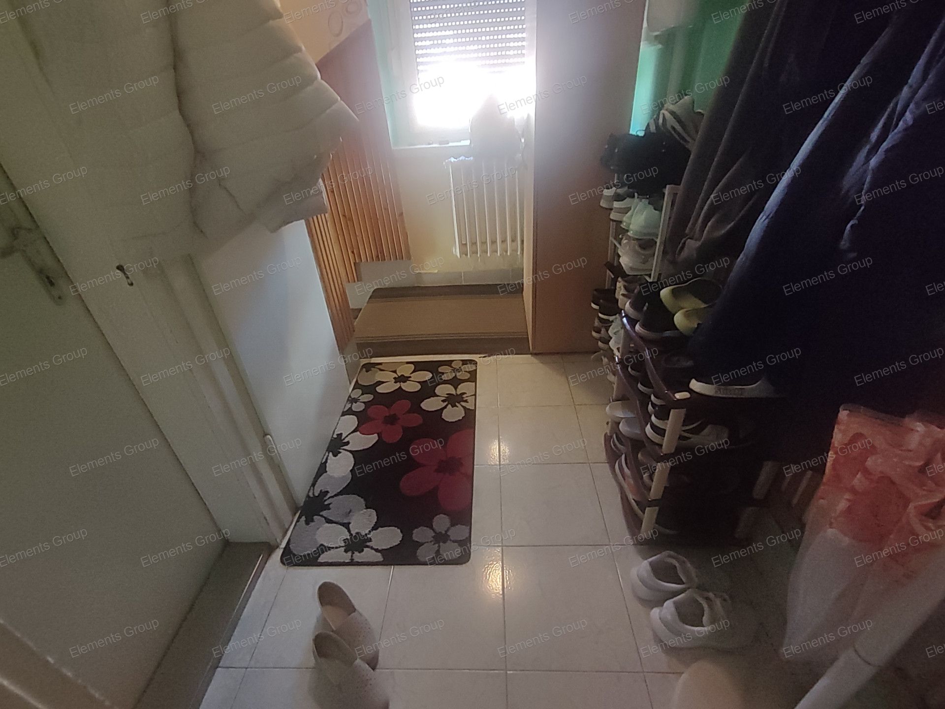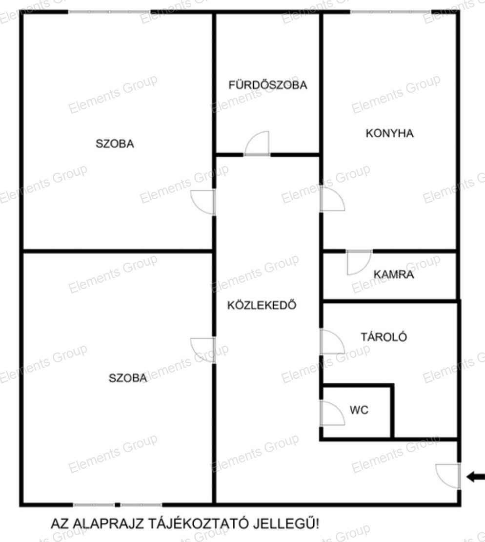 A lakás elosztása: előszoba, közlekedő, fürdőszoba, külön WC és konyha,2 külön nyíló szoba.