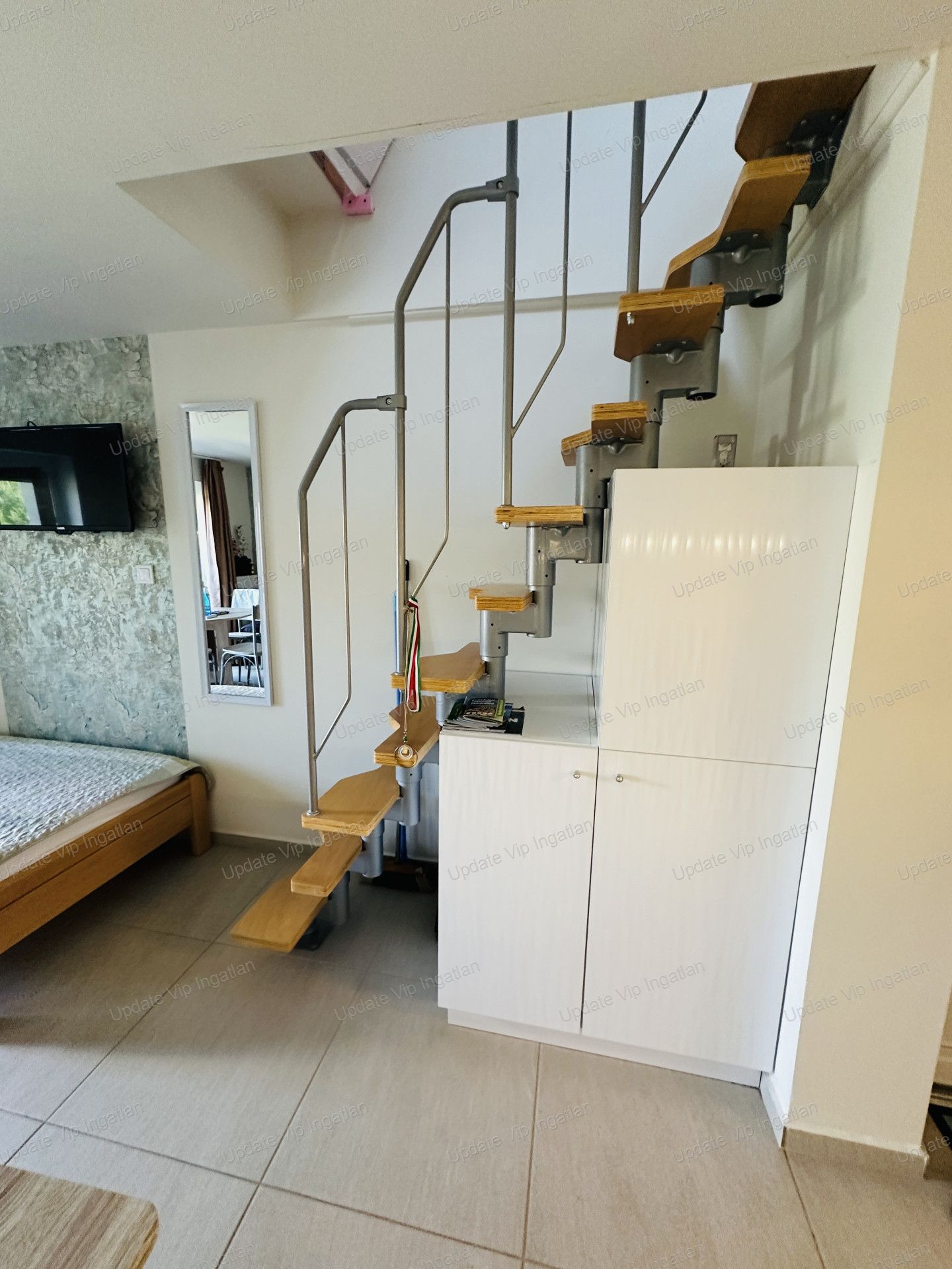 Az emeleti lépcső alatti rész is be lett építve szekrénnyel.