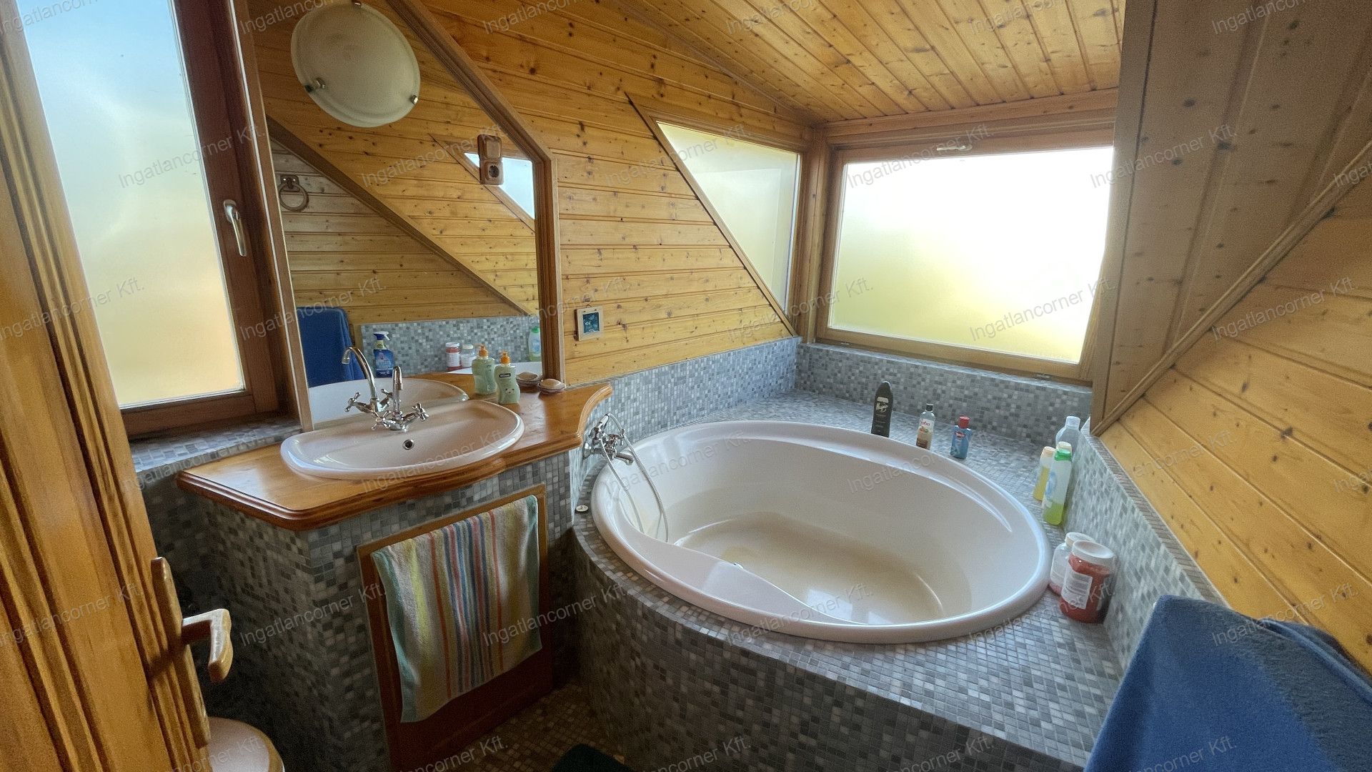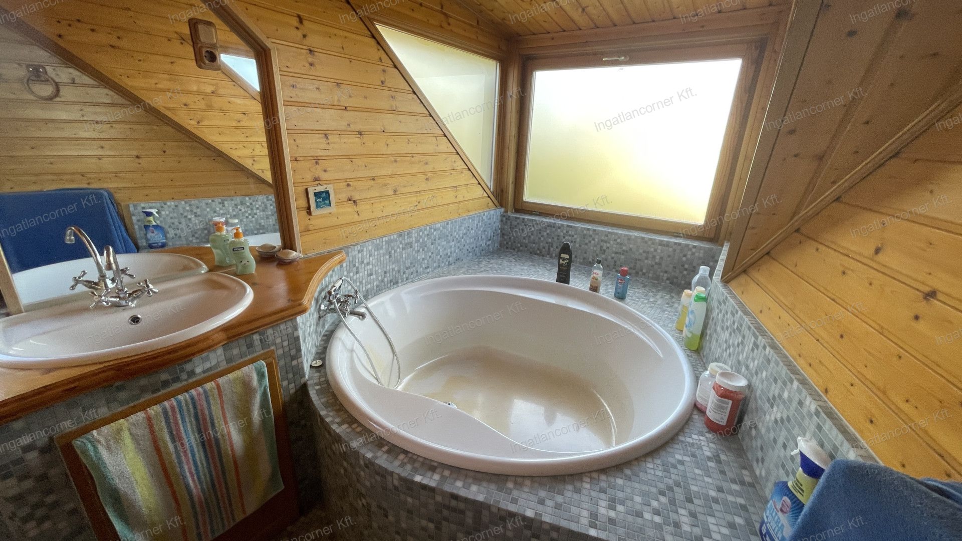 Nagy méretű fürdőszoba káddal és WC-vel