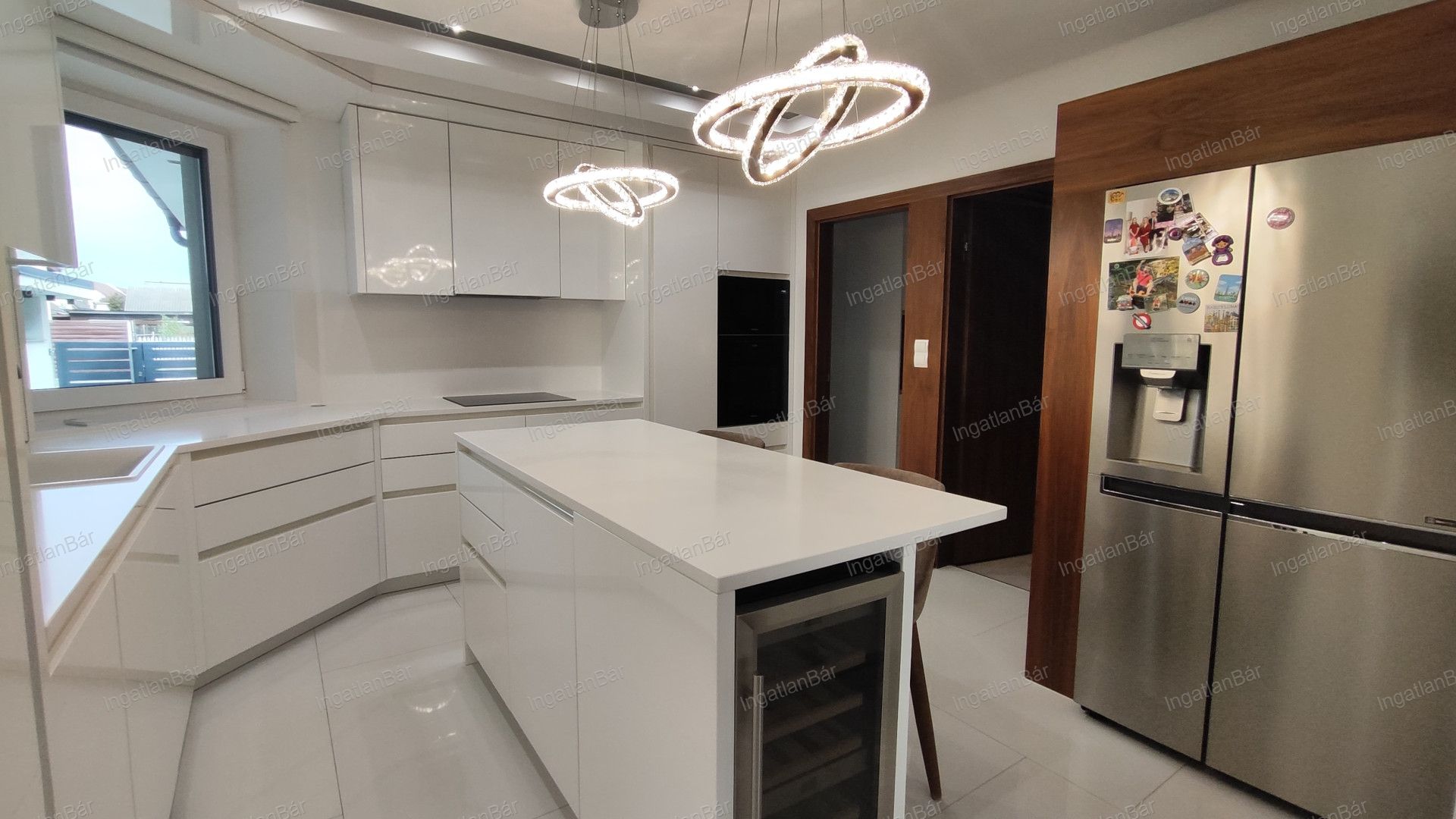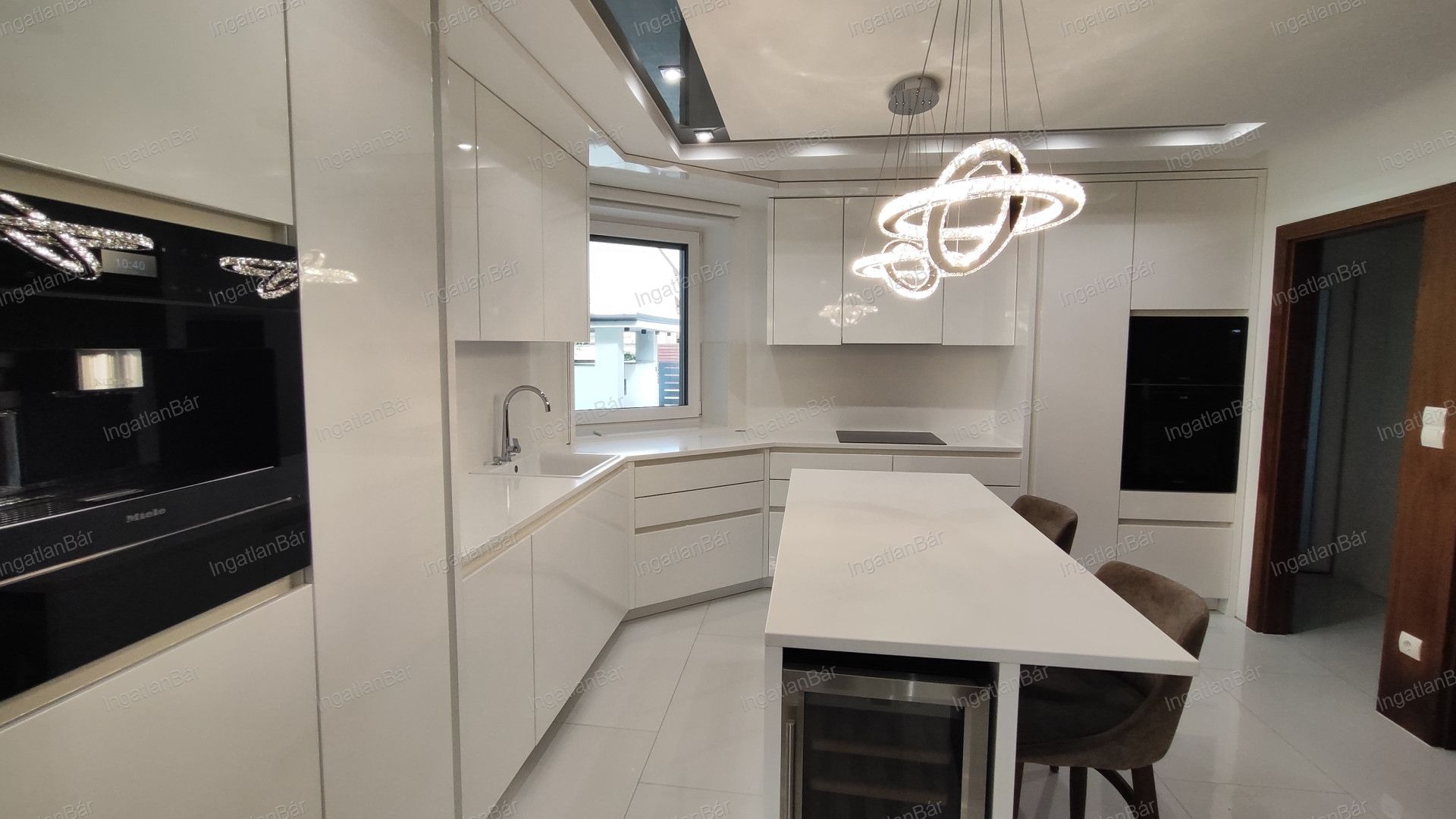 Gyönyörű, modern beépített konyha, külön főzőfülke és praktikus mosókonyha