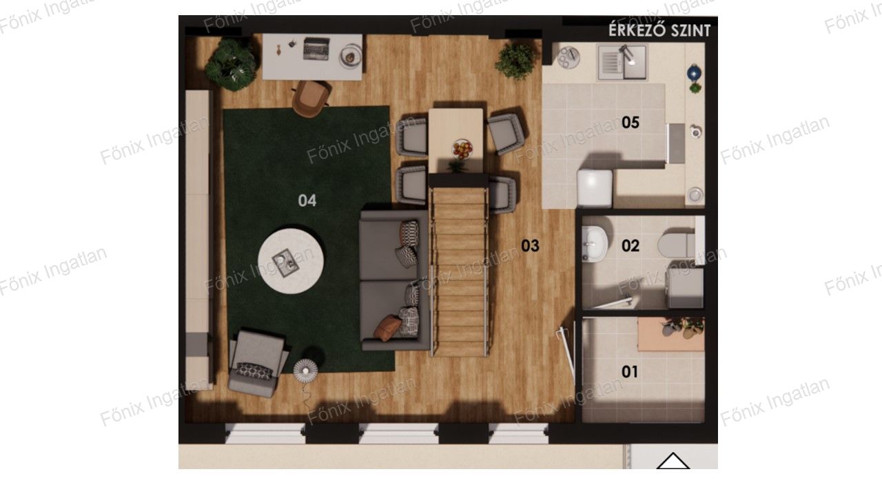 5-ös lakás: 67,2 m2 - nappali + 2 szoba