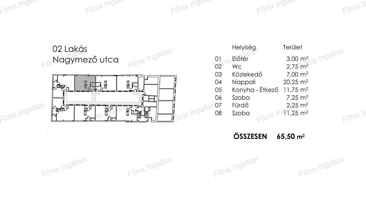 2-es lakás: 65,5 m2 - nappali + 2 szoba