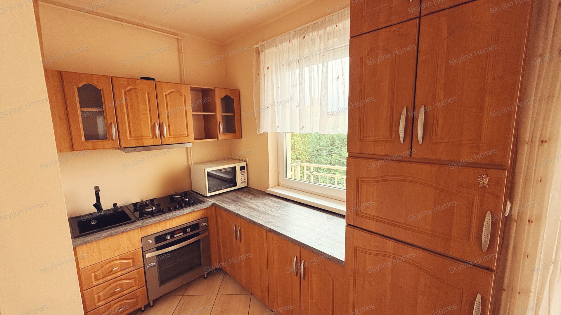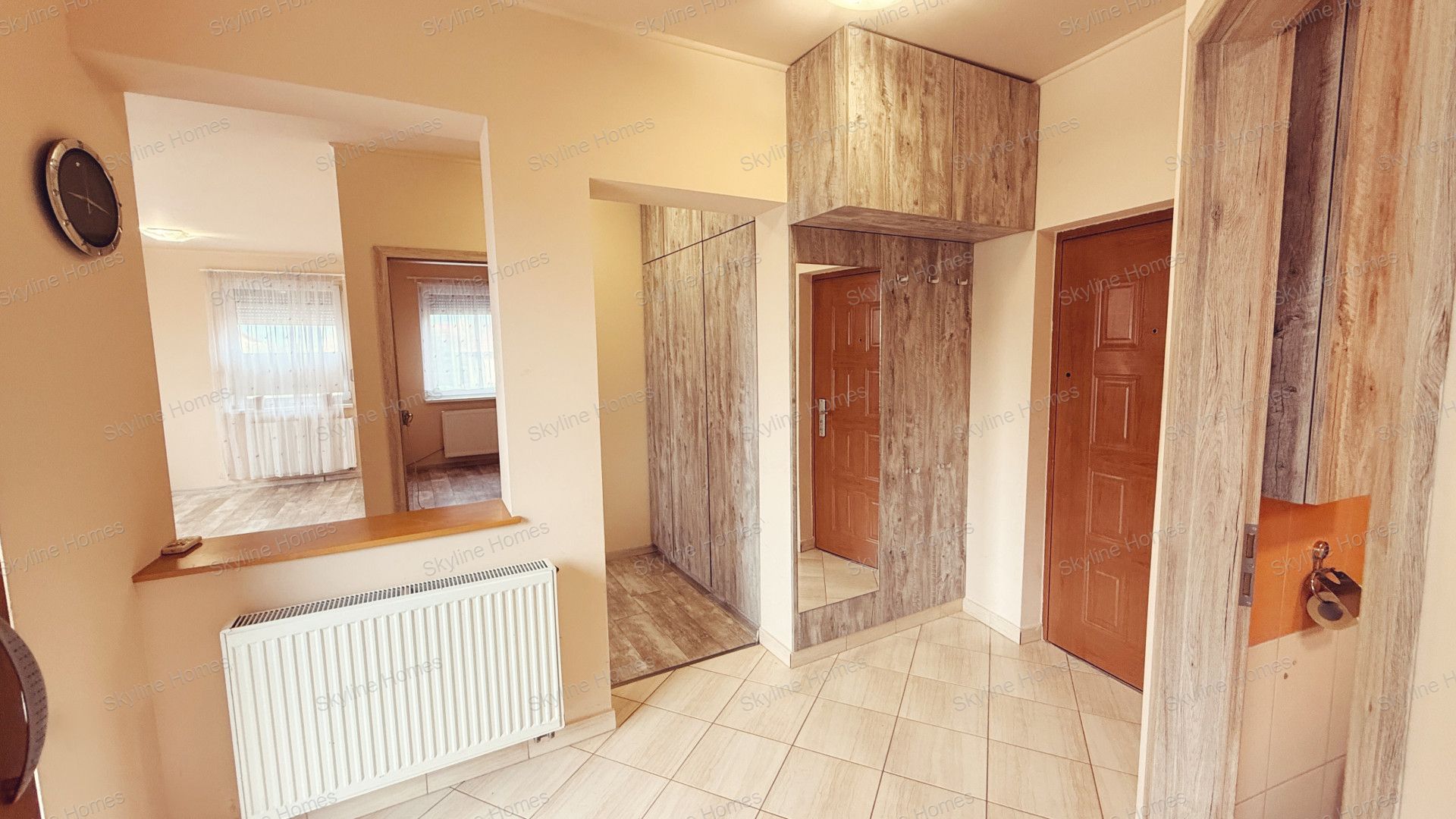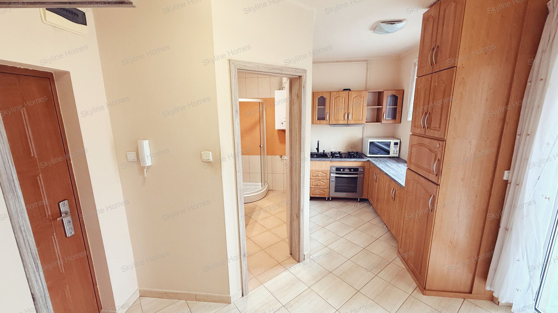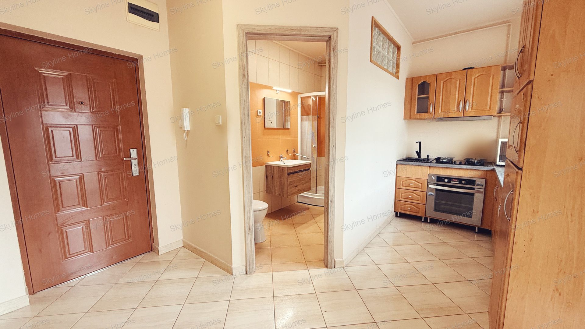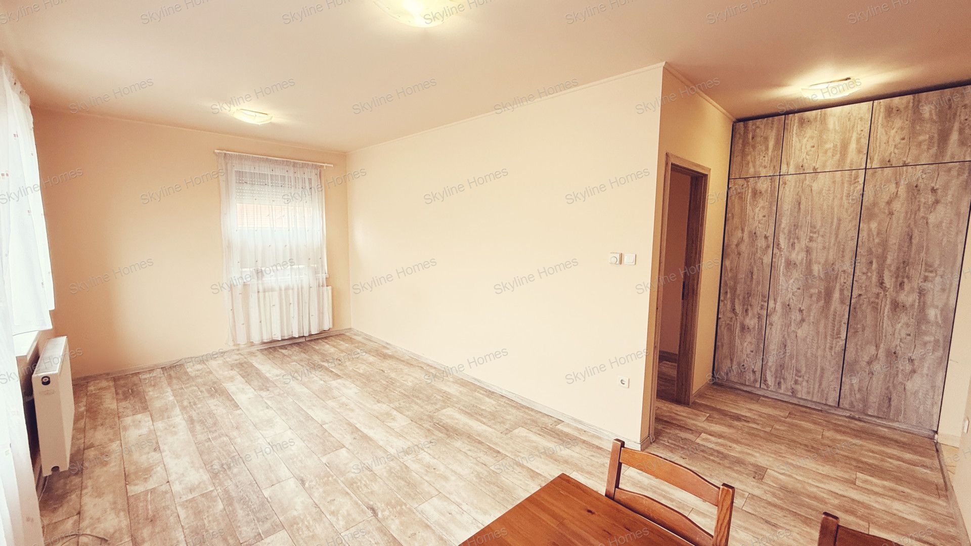 A belső tér jól átgondolt: a hálószoba mellett tágas, egybenyitott nappali–konyha–étkező rész szolgálja a mindennapi kényelmet. Az előszobában beépített szekrény kapott helyet, a konyha pedig gépesített bútorral felszerelt, így a lakás azonnal költözhető állapotban van.
