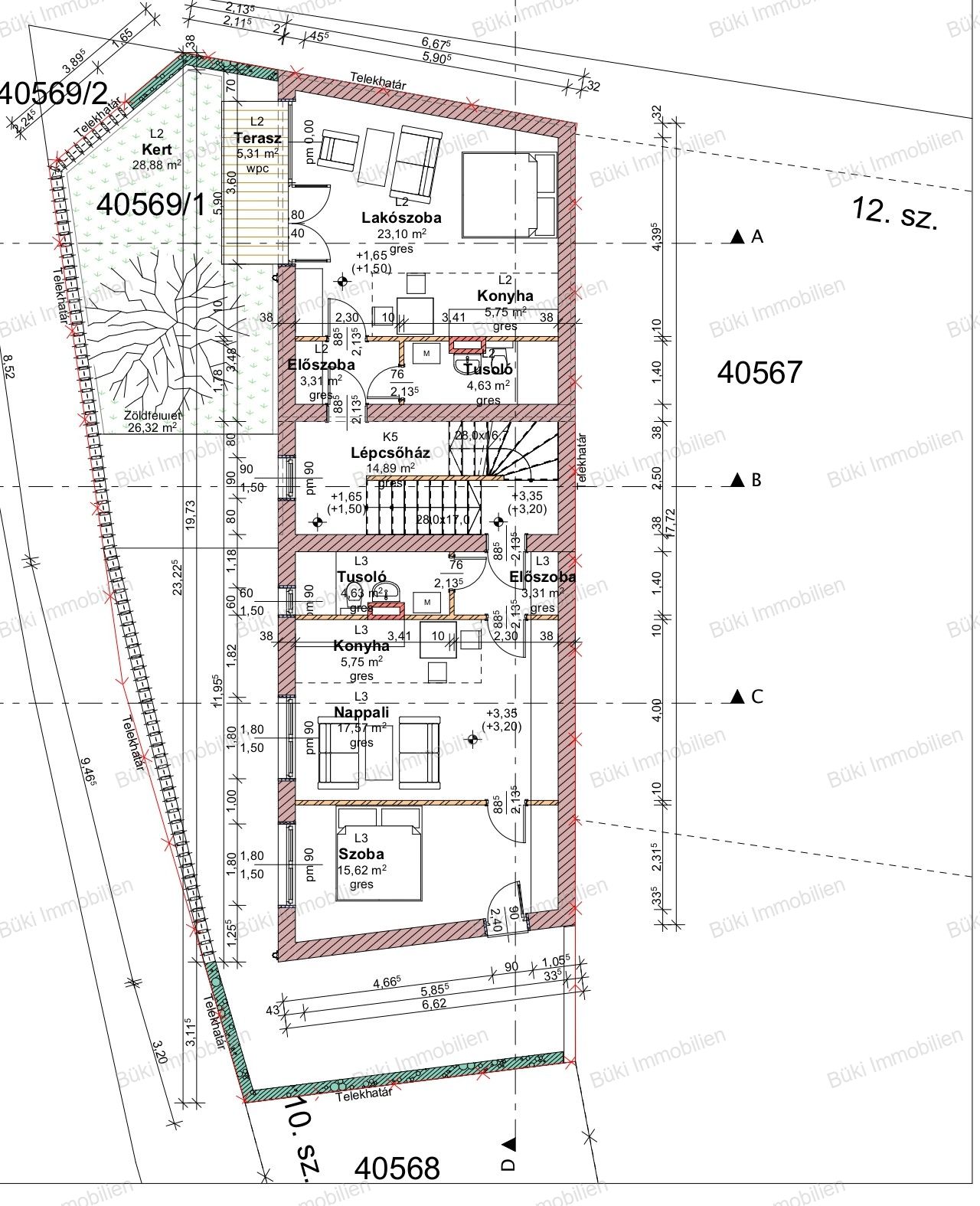 Alapterület 40 m2,  29 m2-es telken